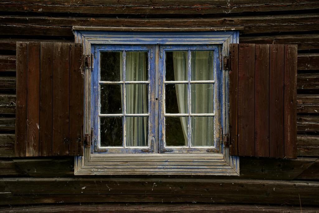 Denne skriveøvelse er fri fantasi. Et hus. Et sprosset vindue. Skodder. Gardiner, der er halvt trukket for.